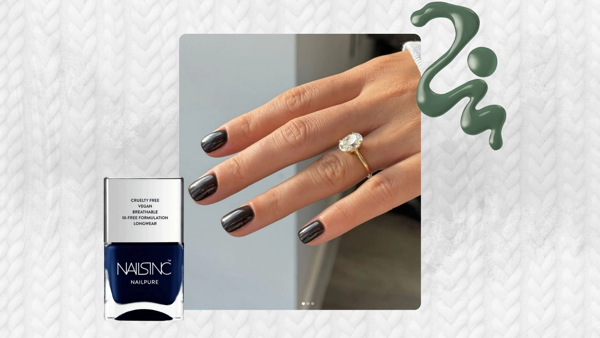 It’s always nice to take your nail inspiration from nature. Pistachio nails tend to be on the menu come springtime, so why not ease yourself into the green with forest and so-dark-they-could-be-black hues that wouldn’t look out of place on a woodland walk?