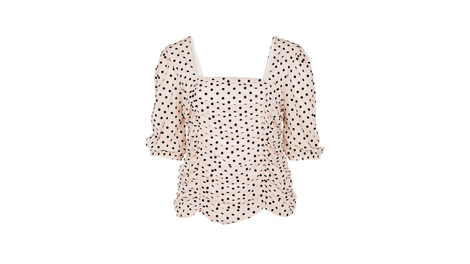 This is one of those tops you can wear on repeat for any occasion, day or night. The covered buttons and golden polka dots make it look more luxe than the high street price tag. The draped fabric will skim over hips and tums no matter what trousers you wear underneath.