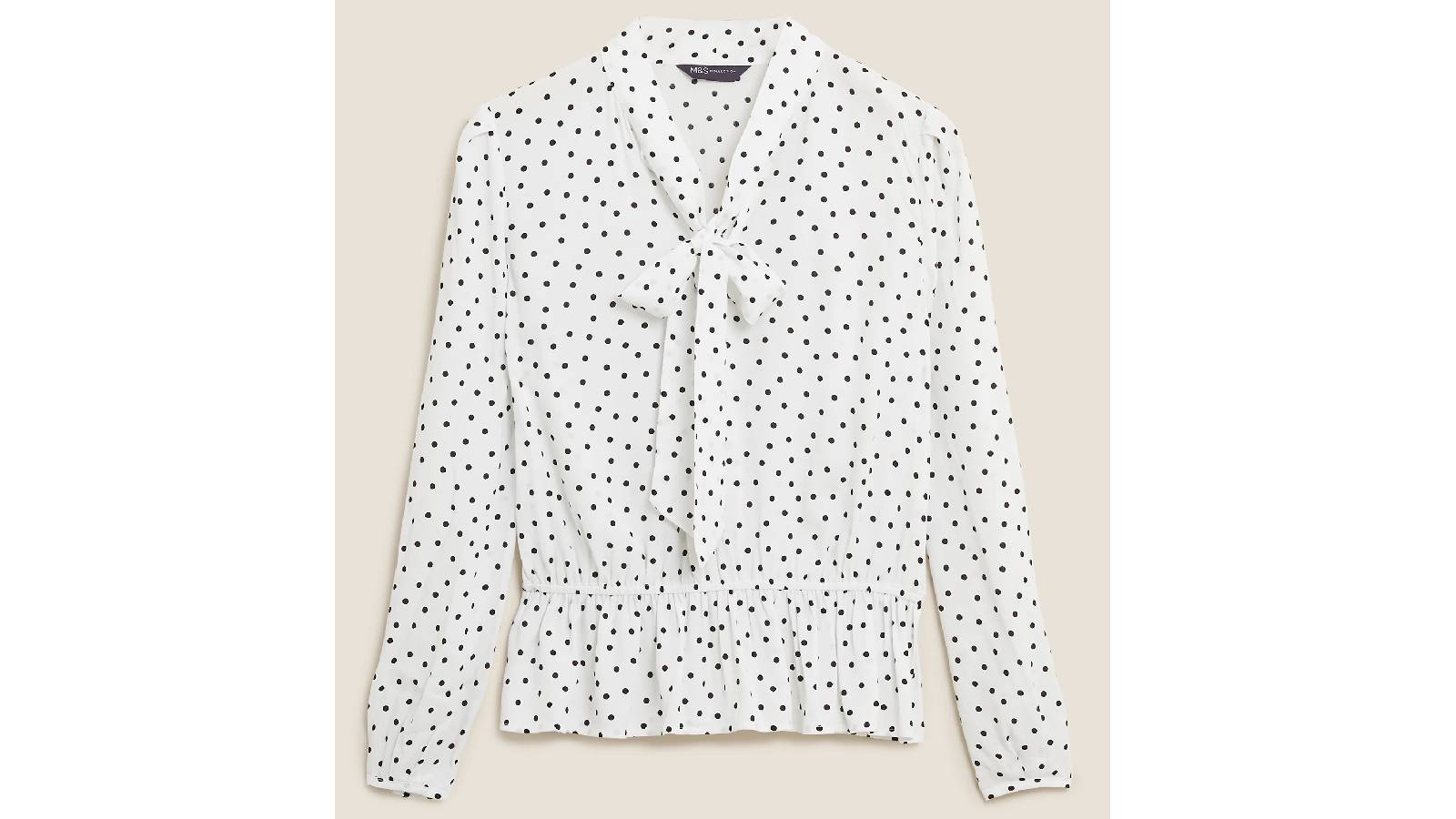 M&S Polka Dot Pussybow Long Sleeve Peplum Top