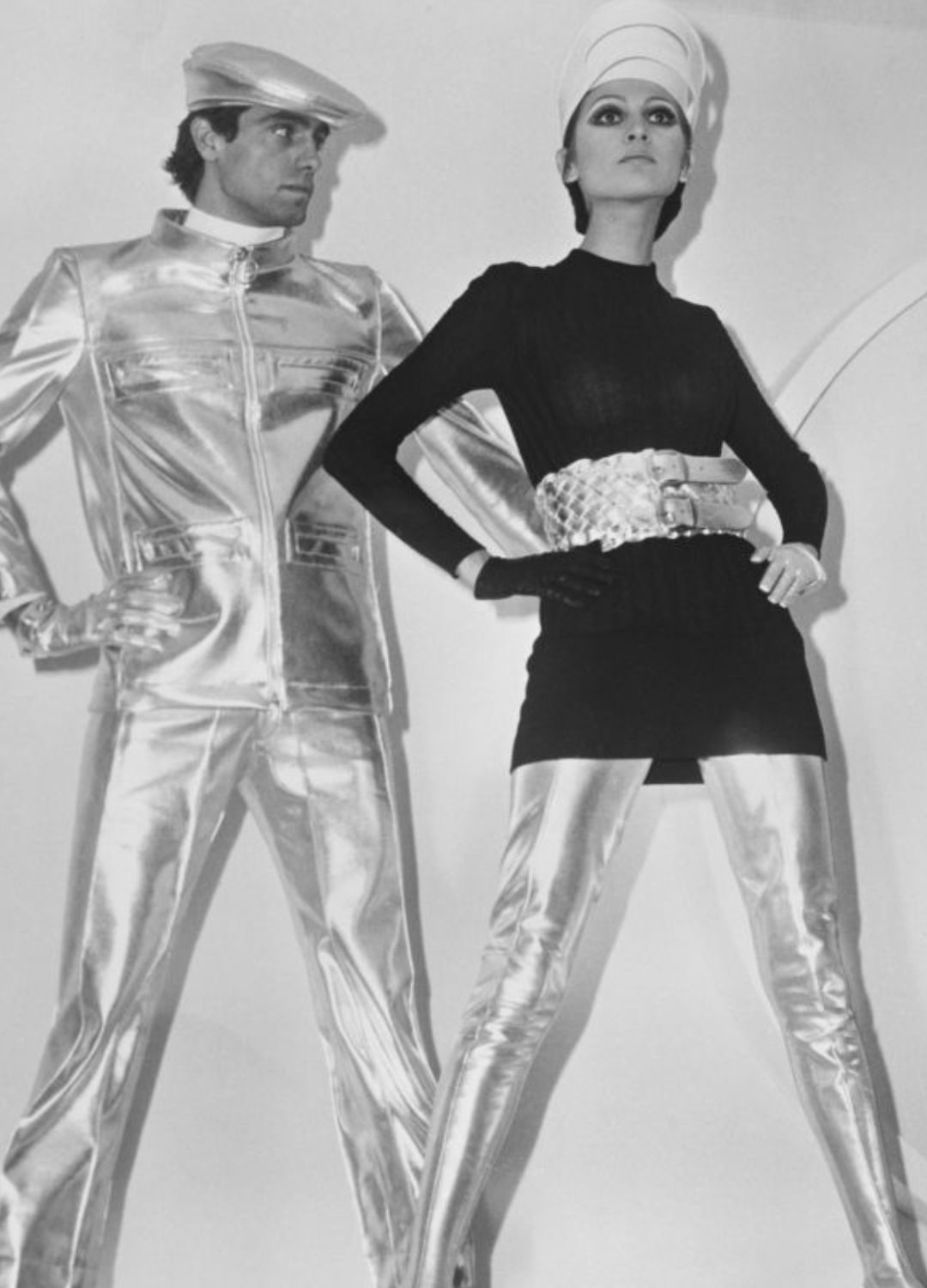 The space race in the 1960s had designers clambering to create futuristic designs that reflected their imagined intergalactic future. Futuristic designs were all over the catwalk, featuring chain mail, vinyl and PVC, often in metallic and white tones.