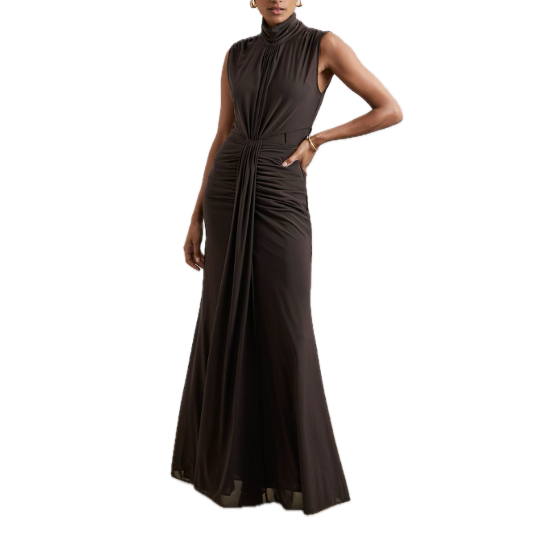 Shades of brown are huge news for this season, and are a chic alternative to traditional brights or classic black for a star-studded soiree. The 47-year-old barrister styled her gown beautifully with a pair of matching toned heels, some understated gold jewels and a box clutch. If you are on the hunt for a new frock for a special event, a dark brown tone will work beautifully for any occasion, so I have rounded up some similar chocolate-hued buys below.