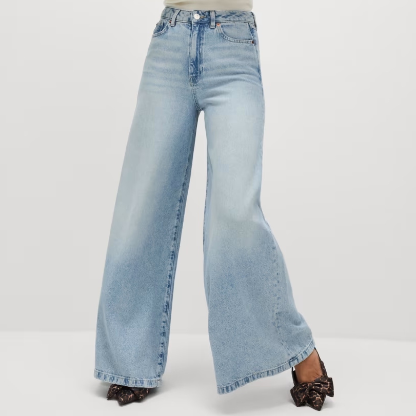 Whether or not you want to wear Mary Janes with socks, you might well have been inspired by Emilia’s outfit to give them a go with a simple everyday look. The Silent Witness star opted for a pair of ultra wide leg jeans in a delicate light blue. Lighter denim always tends to feel a little more off-duty than indigo or black denim washes and this shade worked so well with the relaxed, draped silhouette of her jeans and the subtle frayed hems.