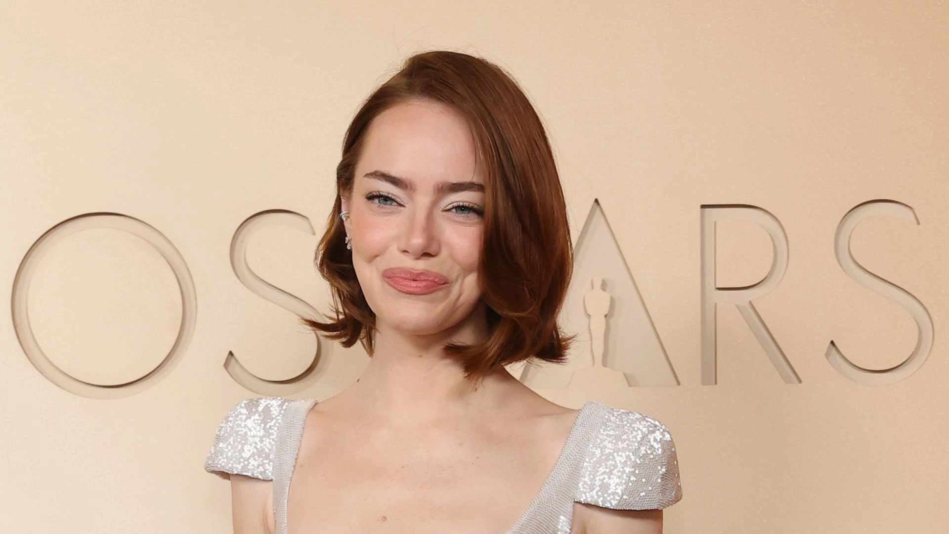 Emma Stone brings an ethereal touch to the Oscars red carpet in a fully sequinned dress