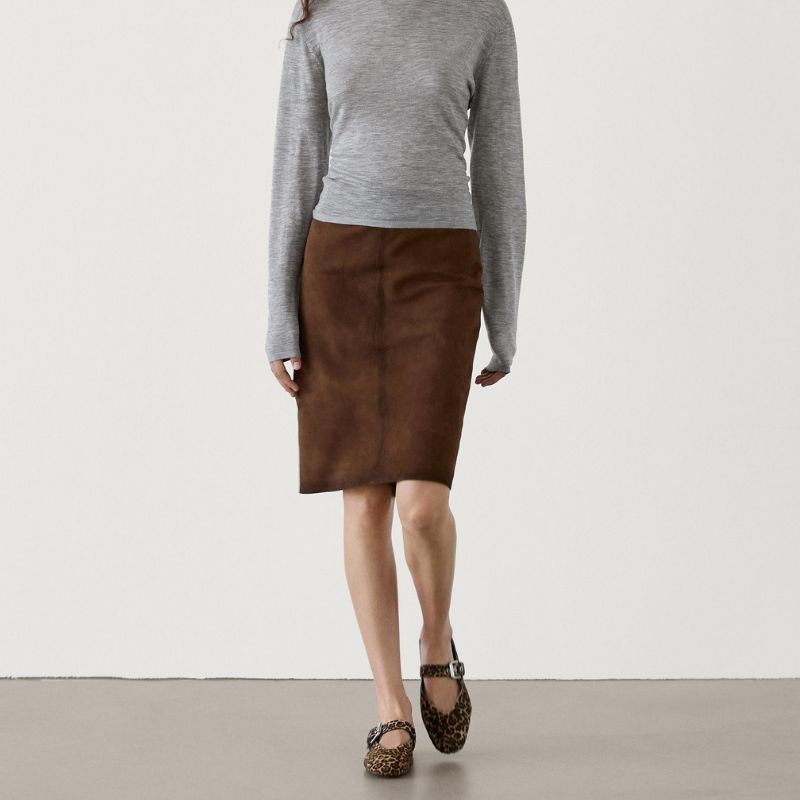 Spotted in a chocolate brown pencil skirt, caramel-toned satin blouse, and matching suede boots, Longoria shows us exactly how to mix textures and tones for an elevated winter look that's worthy of being in everyone's capsule wardrobe. Suede seems to be everywhere at the moment, falling in line with the winter fashion trends of 2024, and it's no longer just reserved for coats and jackets, statement skirts are the new way to wear this luxe fabric.
