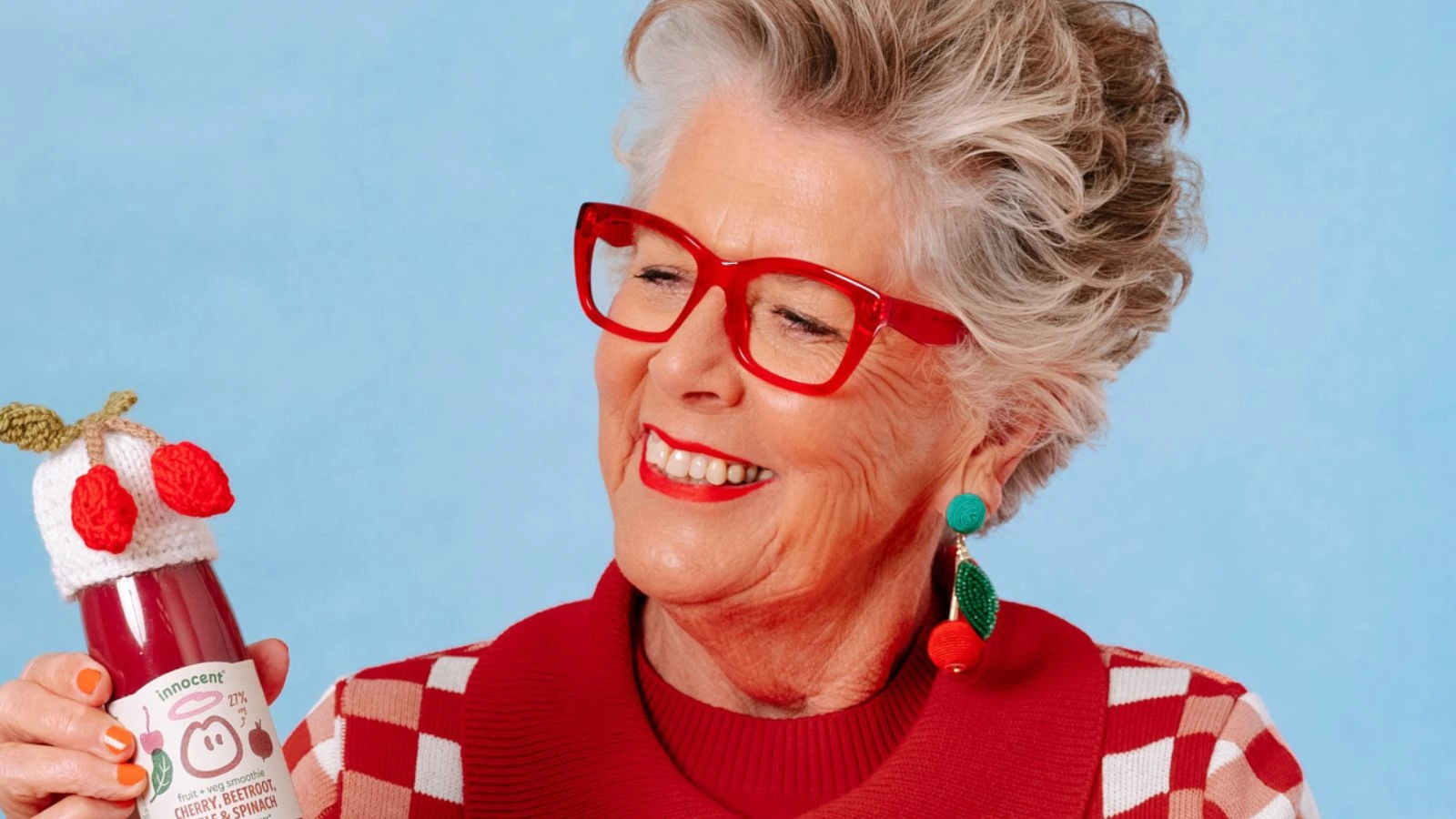 Prue Leith dazzles in a limited-edition Big Knitwear piece from innocent x House of Sunny – a collection that transforms cosy knitwear into fruit-inspired, must-see statement pieces. It's all to celebrate the return of the Big Knit, raising funds for Age UK to help older people live well.