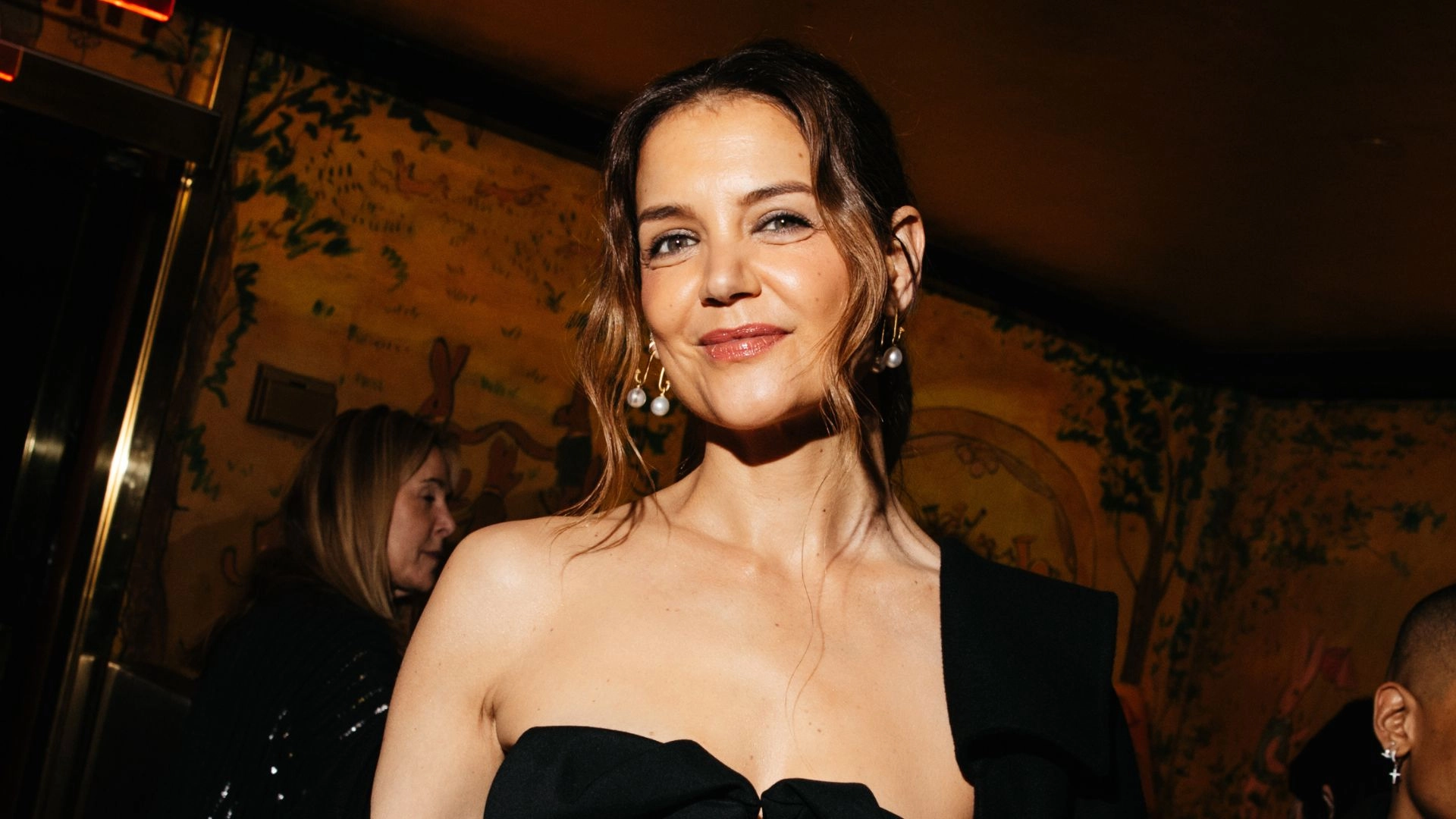 Katie Holmes' elegant look is a lesson in how to wear dresses with black tights for a winter date night