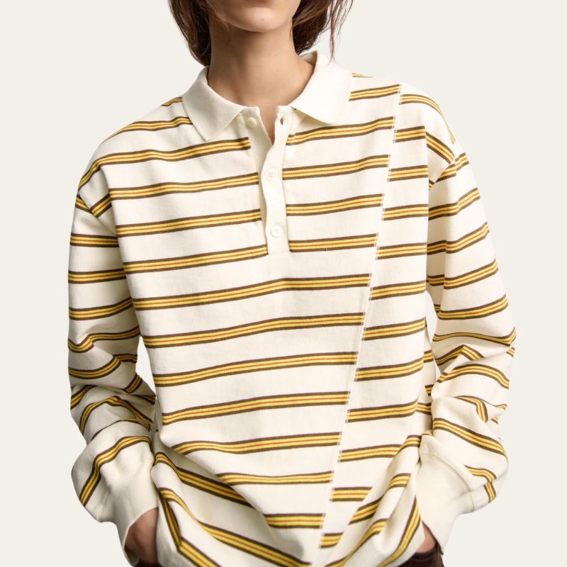 Kristen's exact rugby shirt is by Turkish brand Siedrés, and I love the pumpkin orange stripes. It has now sold out, but the good news is I've found fantastic lookalikes to help you lean into the sports luxe look. No knowledge of the rules of rugby required, promise!
