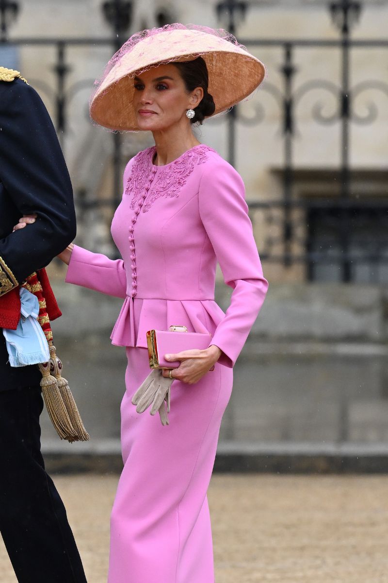 King Charles III's Coronation threw up countless memorable style moments, but Queen Letizia certainly had one of the most standout looks of the day. Not everyone can pull off bubblegum pink, but it couldn't look better on her. The peplum jacket and pencil skirt co-ord makes for a gorgeous alternative to a dress with added fun and flare.