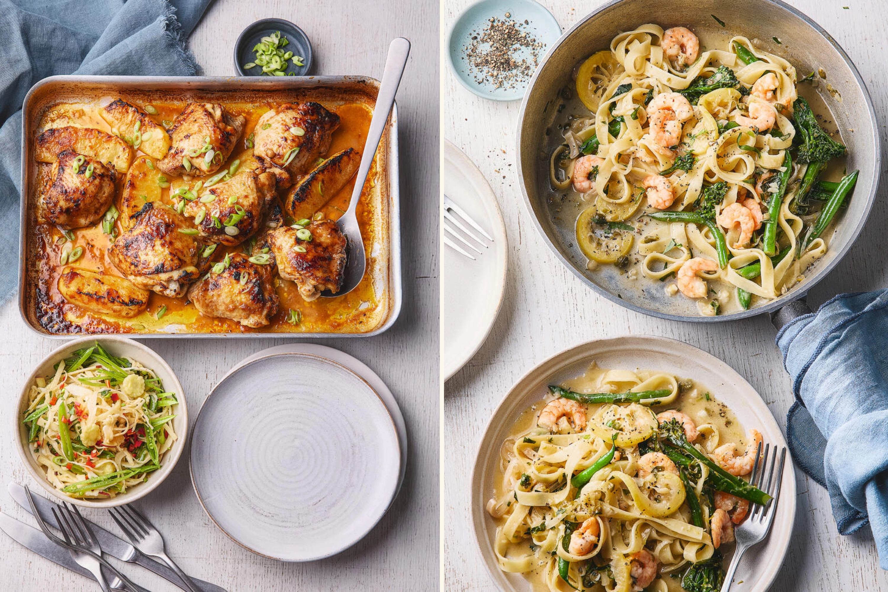 If you like to plan your dinners for the week ahead, this line-up makes it easy. Think of it as a five-day menu. A colourful salad or grilled halloumi bowl is perfect for a Sunday reset: midweek, go for something quick like lemony prawn tagliatelle, and by Friday, a fragrant butternut curry or sticky chicken traybake feels like a well-earned treat.