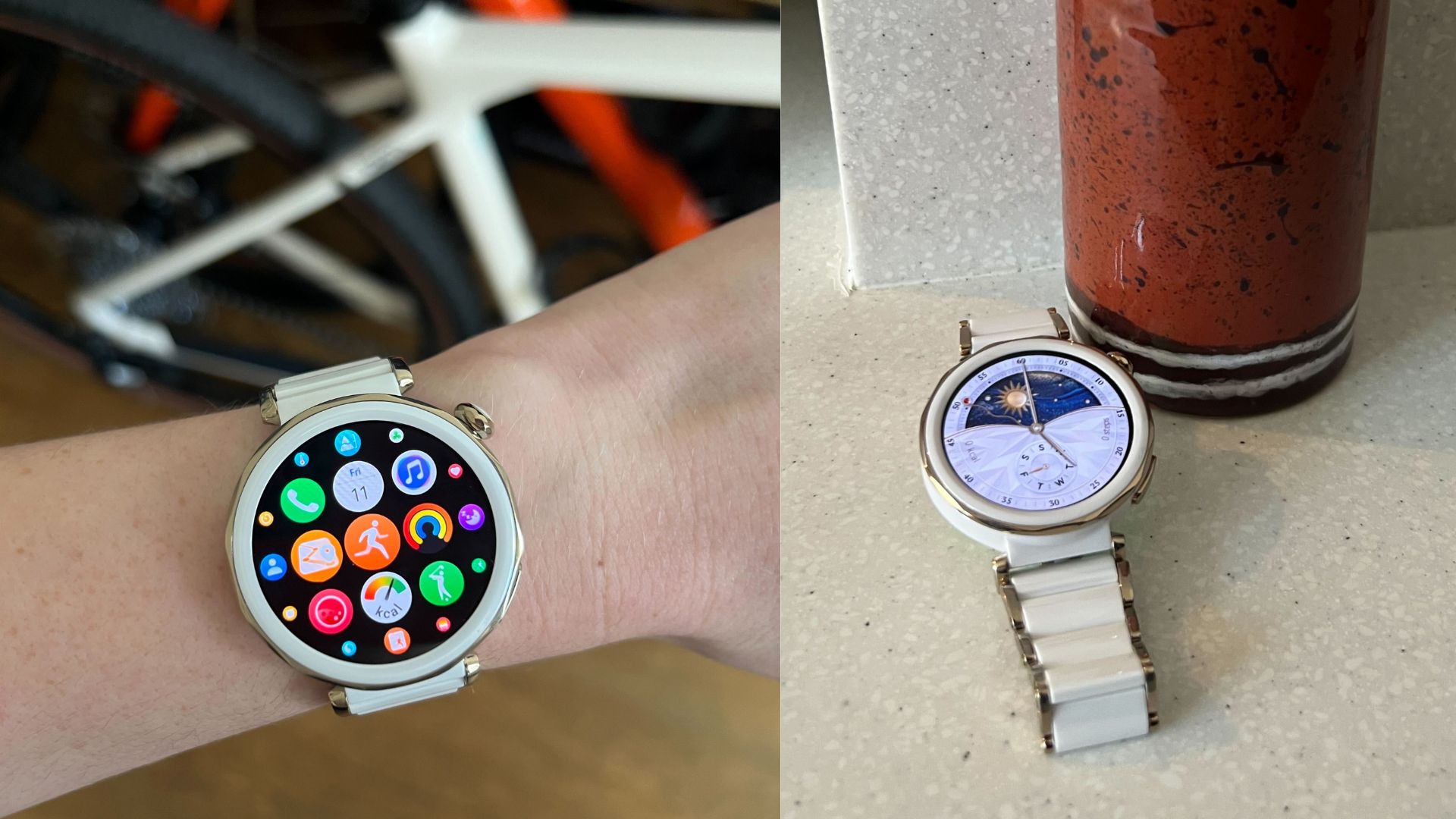 It's available in three colours: white ceramic or white leather (and black silicone or titanium, but these are much larger and typically designed for men). The watch has a real premium feel and is weighty on the wrist like any other ceramic timepiece would be, giving it an authentic feel, but it's not too heavy to move with. It also has a sapphire glass screen and the watch faces are customisable in the app.