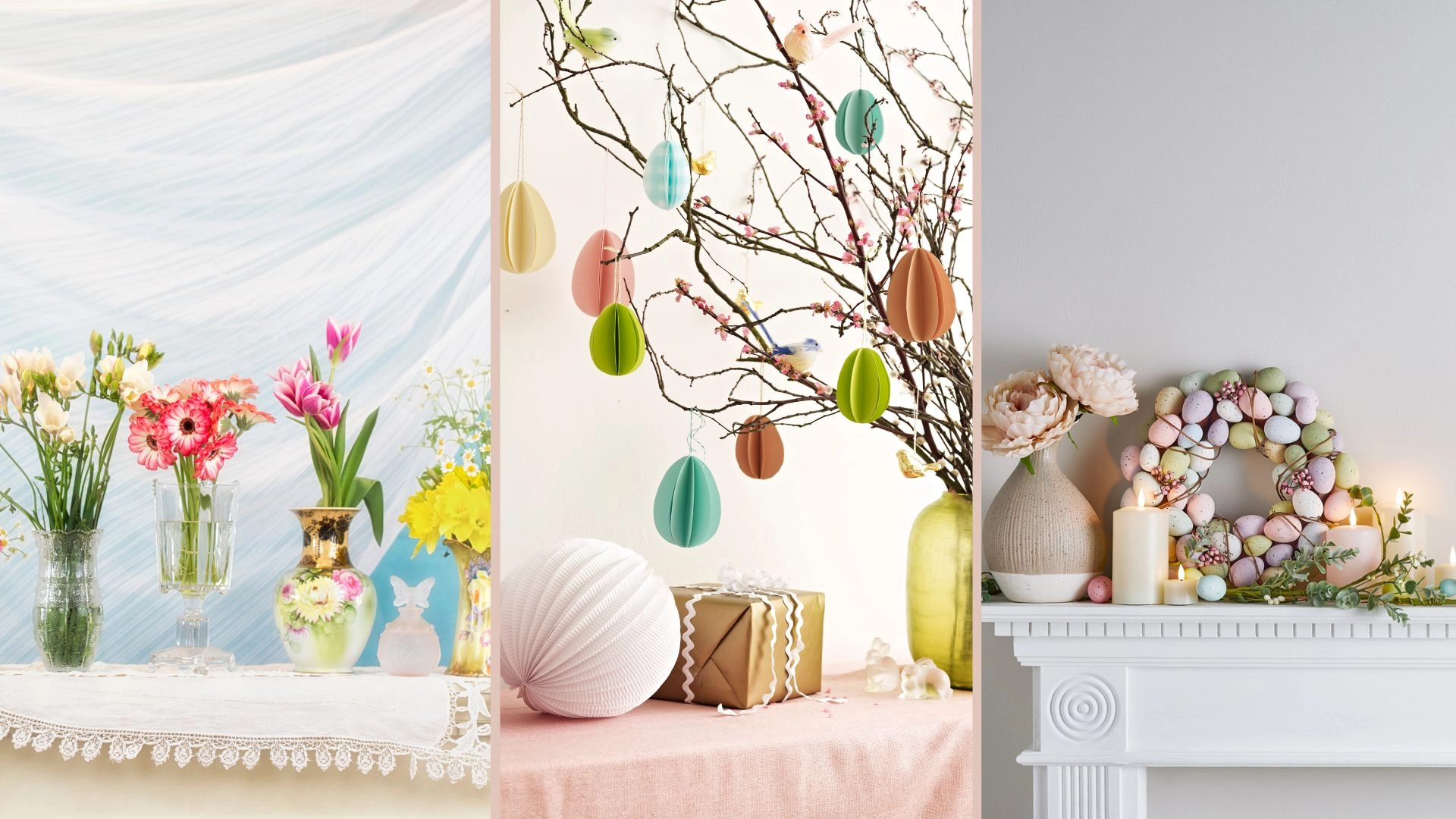 Decorating your mantelpiece for Easter is a great way to breathe some fresh life into your home this spring. For styling ideas that can double-up as spring decor, stick with flowers, scented candles and vases. For a more Easter-specific take on Easter mantel decor, embrace motifs such as bunnies, flowers and eggs or even traditional Easter tree ideas.