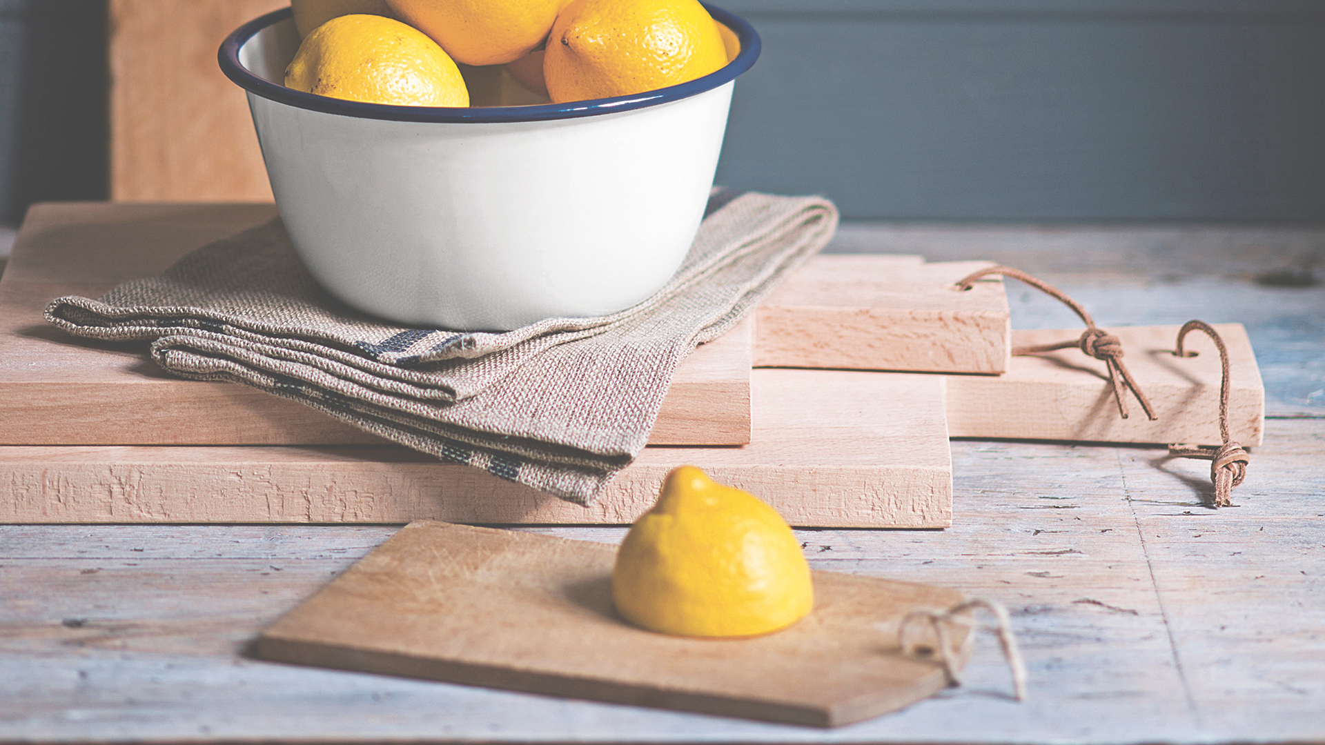 Then, grab half a lemon and scrub the surface using the cut side of the fruit. Not only will the combination lift grime and remove stains, it will also help deodorise your chopping board.