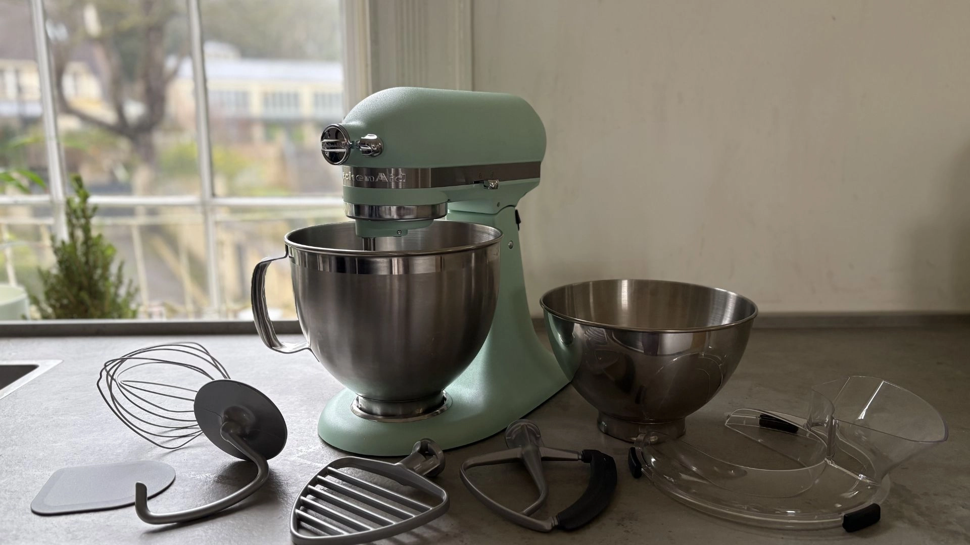 It's also important to note the special extras that come with this KitchenAid Colour of the Year Stand Mixer, because, aside from the spearmint shade and sandy texture, they’re what sets it apart from the other KitchenAids.
