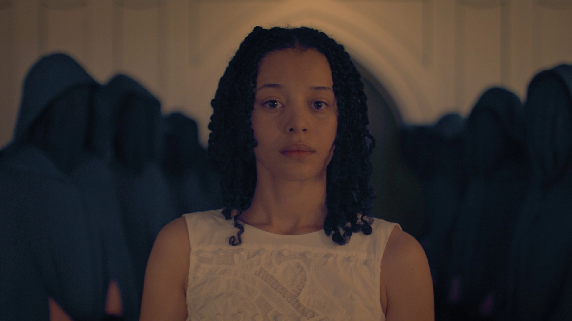 The Testaments is set 15 years after The Handmaid's Tale came to an end, and Chase Infiniti plays an older Hannah/Agnes who is starting to question the world she's grown up in, with only vague recollections of her real mother.