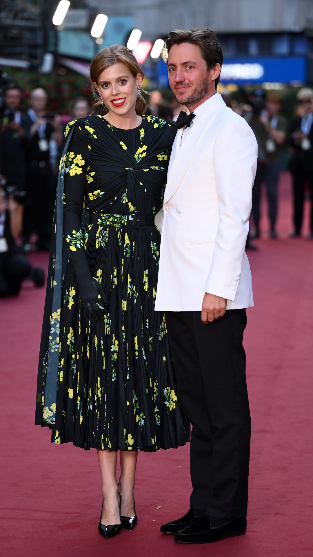 - Princess Beatrice looked gorgeous during her latest public appearance, accessorising a bold black dress with black suede pumps and opera gloves.