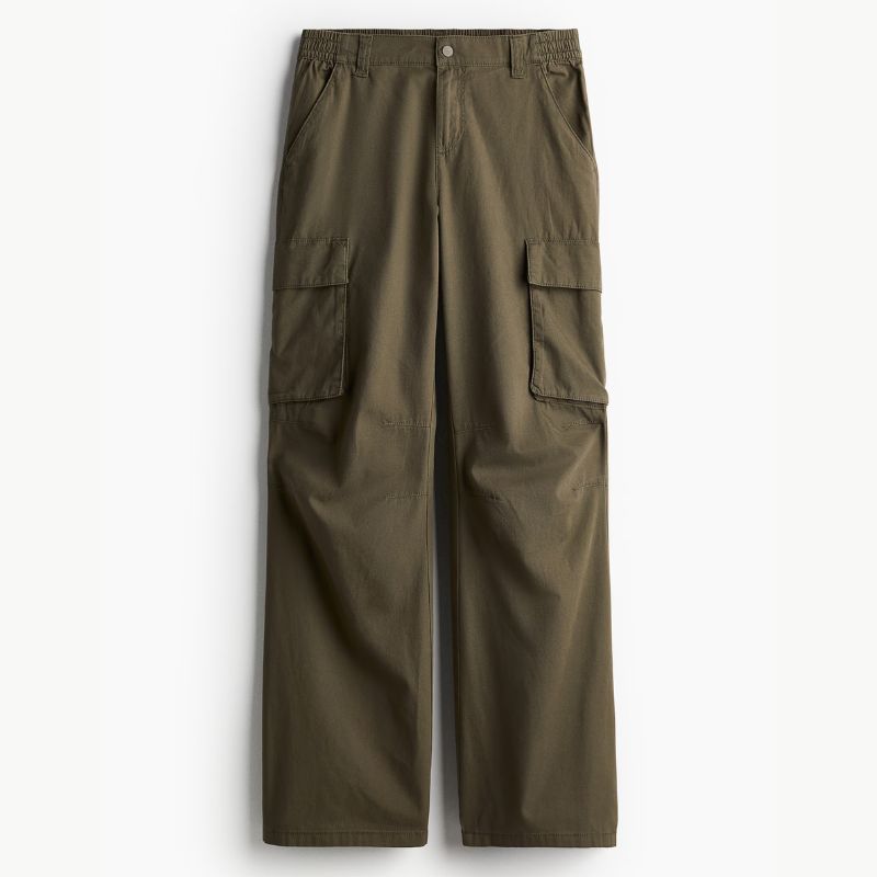 If waterproof trousers don't quite fit in with the rest of your wardrobe, a pair of khaki cargos are both practical and chic when styled right. An autumn capsule wardrobe staple that can be dressed up with a chic cardigan or worn on off-duty days with a slogan sweatshirt, the elasticated waist keeps things comfortable.